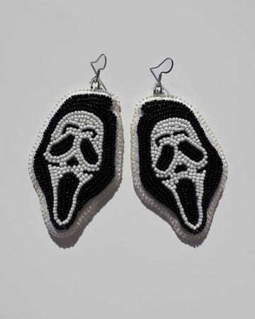 Boo! Meet the Beaded Ghost Face Earrings, a special collaboration with our shy little sister. Each earring is lovingly hand-beaded by Bailey and finished with genuine leather backing. This set is one of a kind.