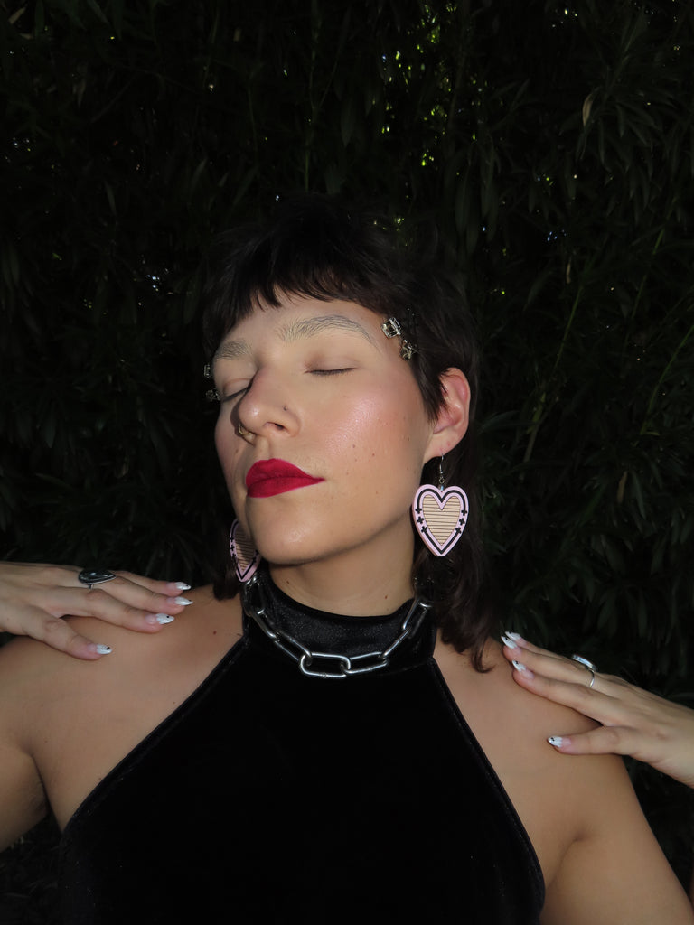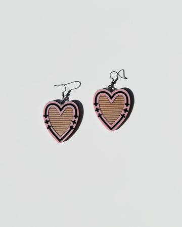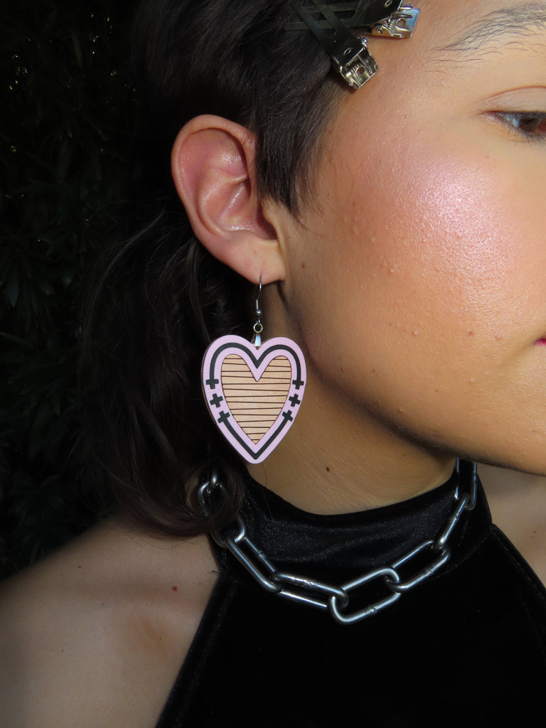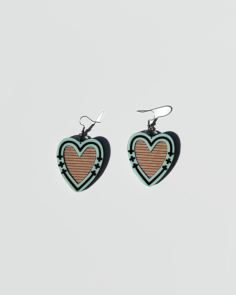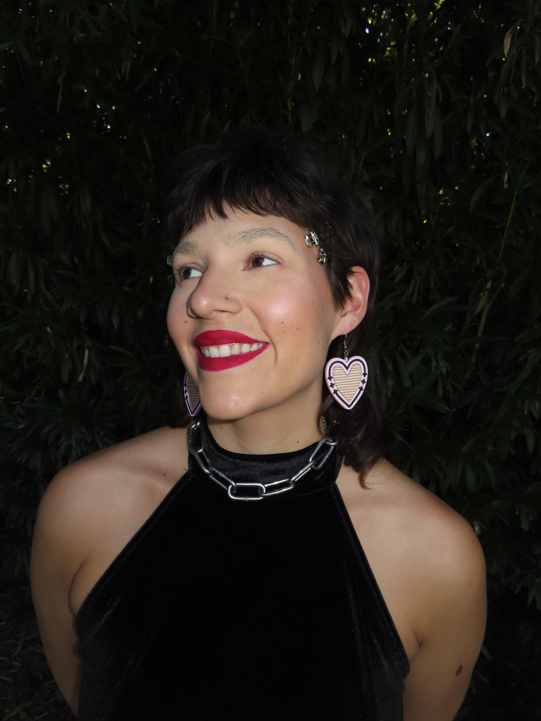 Handmade and designed in our studio, the Soft Leather Hearts feature laser-engraved inlaid genuine leather, framed by sleek acrylic. A perfect mix of delicate and bold. Stainless steel hypoallergenic hardware. Lightweight and comfortable.